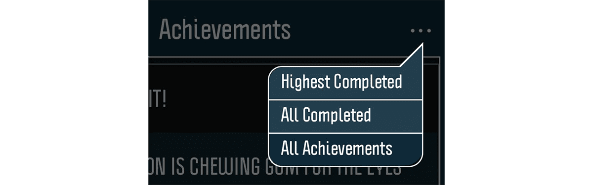 Achievement Summary, Filters