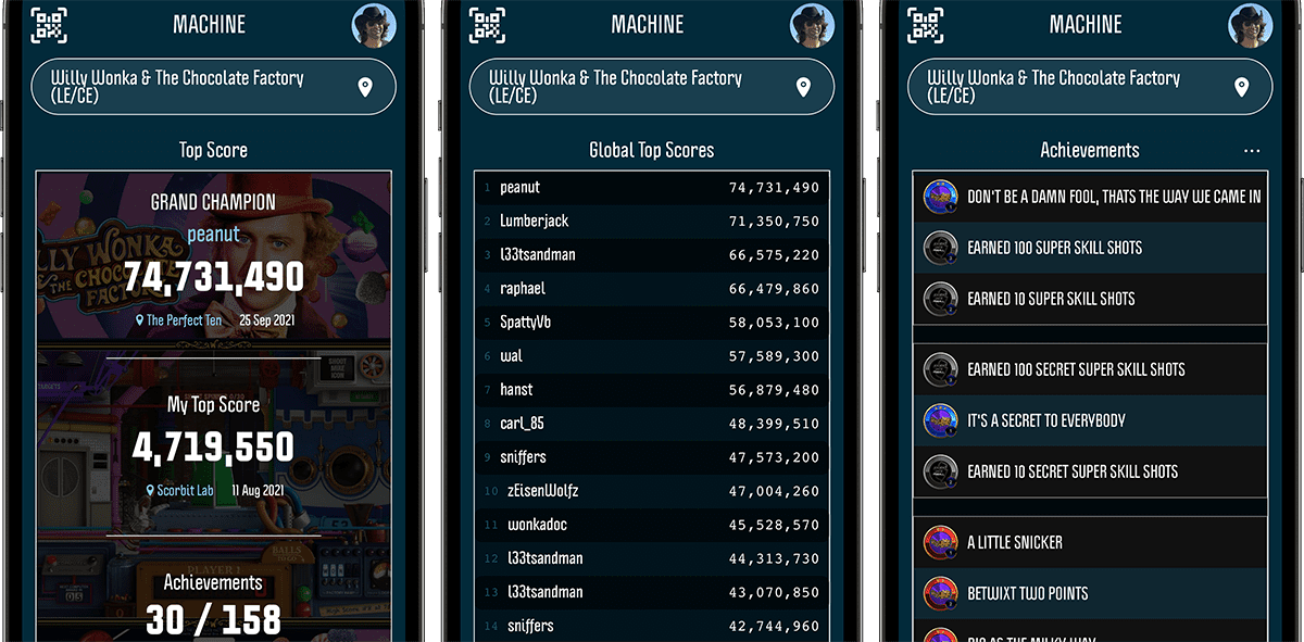Ever wonder what that pinball machine button was in the lower left hand corner? The wait is over, it’s now been activated! By tapping on the machine icon, you can browse machines by title. Once you’ve chosen one, you can browse the global leaderboards and achievements for that machine. Basically search by game, not venue and we’re pretty excited for it.