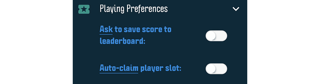 We spoke to large cross section of users and it was nearly unanimous that most users want to auto-save scores. We’ve always had this feature, in the Account Menu > Settings > Playing Preferences. Unfortunately, most of you didn’t know that was available. Therefore, we’re changing it to the default, and changing the language. “Auto-save” has been replaced with “ask to save to leaderboard.” In other words, for new users, auto-save is now default, and you have to opt-in to being prompted!